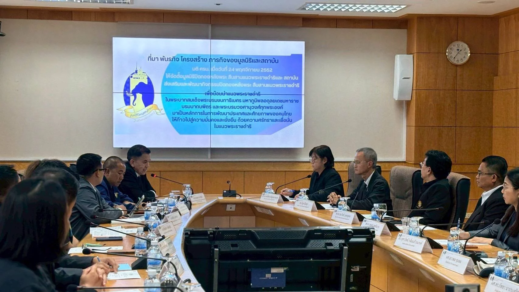 จากนั้น นายวรยุทธ เนาวรัตน์ ผู้อำนวยการสถาบันปิดทองหลังพระฯ ได้นำเสนอเป้าหมายการพัฒนาของสถาบันฯ ในพื้นที่ต้นแบบและพื้นที่ขยายผลทั้ง 22 จังหวัด โดยมุ่งขับเคลื่อนพันธกิจด้านการจัดการความรู้และส่งเสริมการพัฒนาตามแนวพระราชดำริให้เป็นแนวทางหลักในการพัฒนาประเทศ ครอบคลุม 4 ด้าน ได้แก่ แหล่งน้ำ การส่งเสริมอาชีพ สิ่งแวดล้อม และสุขภาพ พร้อมเน้นย้ำบทบาทการบูรณาการร่วมกับสถาบันการศึกษาในพื้นที่ เพื่อถ่ายทอดองค์ความรู้สู่ชุมชน โดยยึดหลักปรัชญาของเศรษฐกิจพอเพียงเป็นแกนกลาง