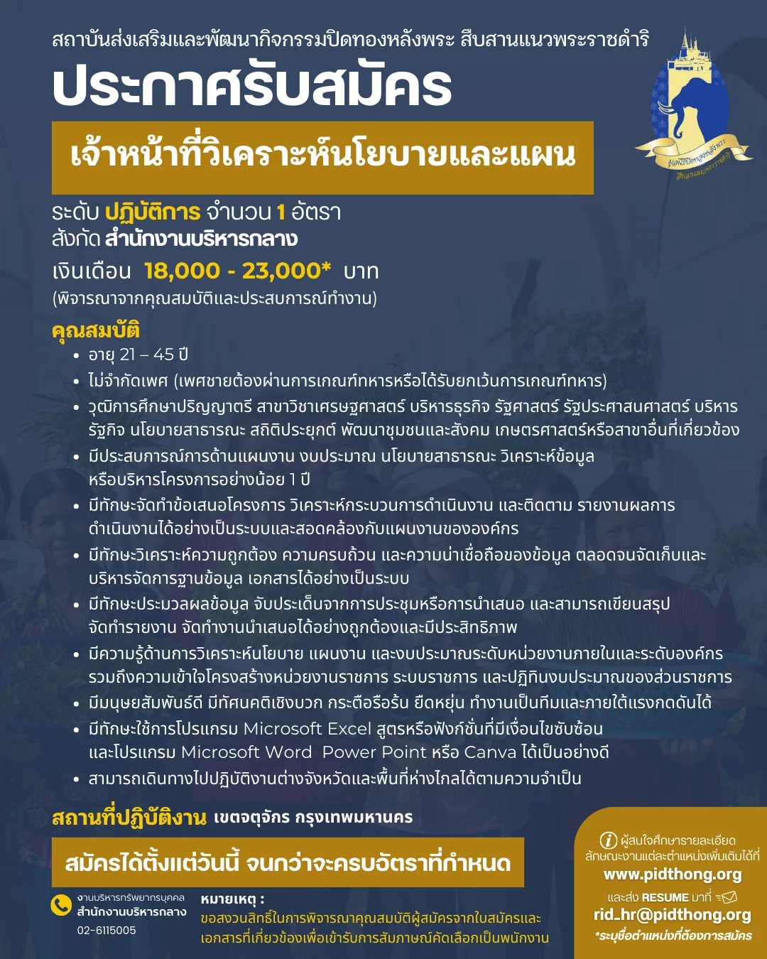 ตำแหน่ง : เจ้าหน้าที่วิเคราะห์นโยบายและแผน