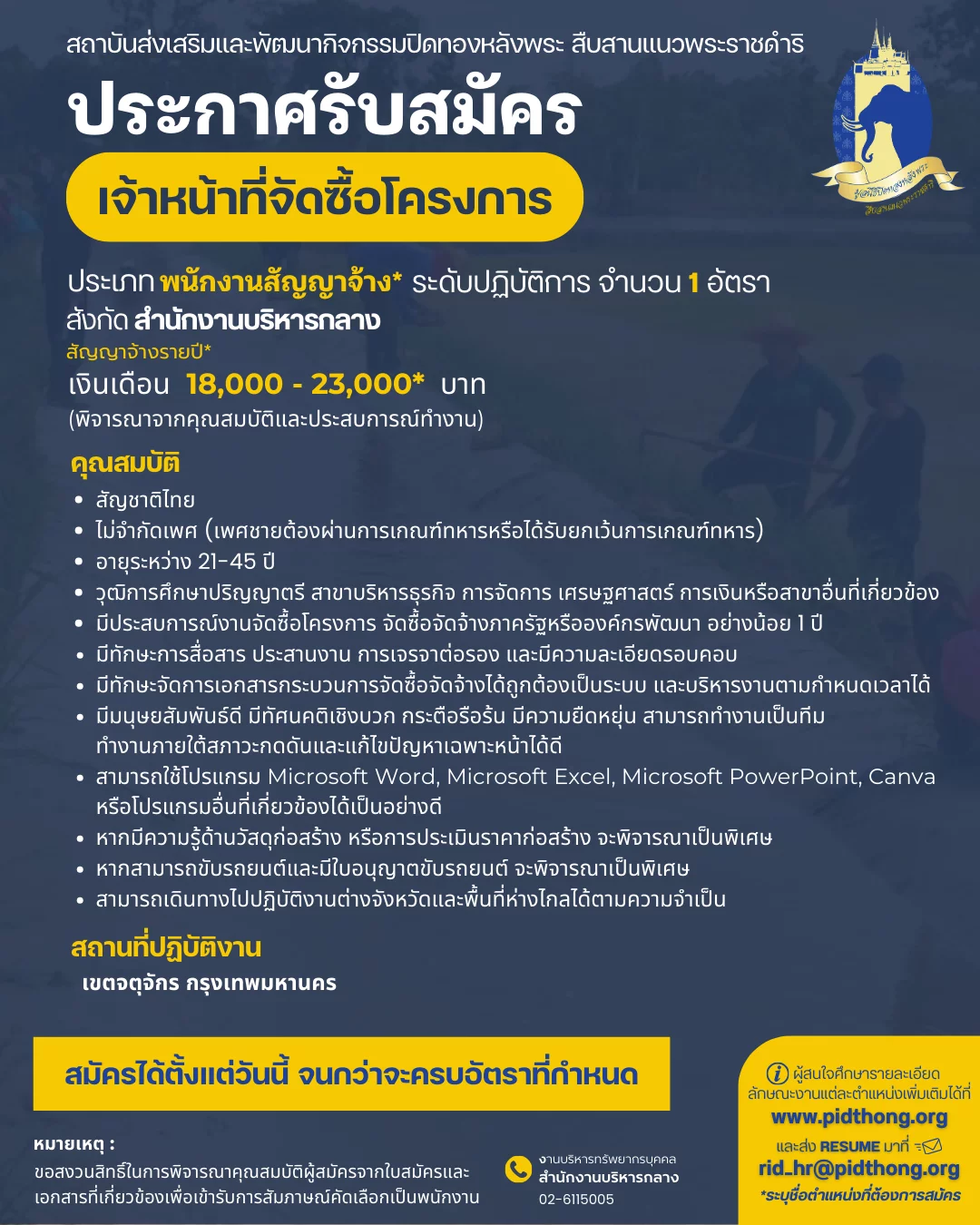 - มีประสบการณ์งานจัดซื้อโครงการ จัดซื้อจัดจ้างภาครัฐหรือองค์กรพัฒนา อย่างน้อย 1 ปี